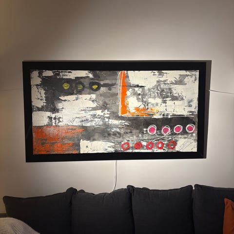 This one-of-a-kind work blends analog texture with modern presentation — perfect for collectors who appreciate conceptual art, tactile materials, and unexpected contrasts.