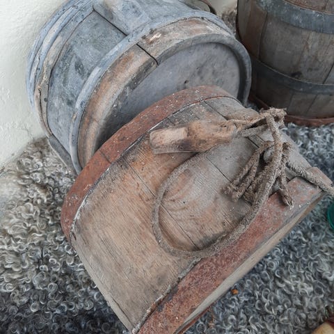 2 st gröna 5 liters ölflaskor varav en med korg som är i bra skick. Båda säljes tillsammans.