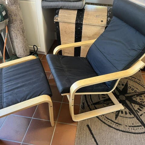 Fåtölj från IKEA med fotpall(den har vattenfläckar).