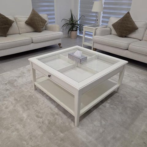 Vitt soffbord med glasskiva