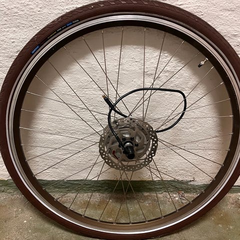 Säljer ett elcykel hjul som satt på en Biltema-cykel (Yosemite) som man kan se på tredje bilden. Den har en 6 pin-kontakt.