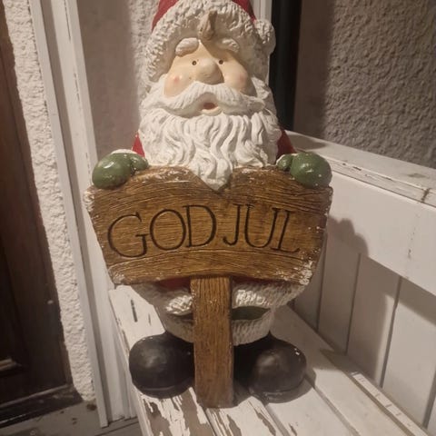Tomte som snurrar runt med speldosa. Inköpt i Tyskland i slutet av -80 talet