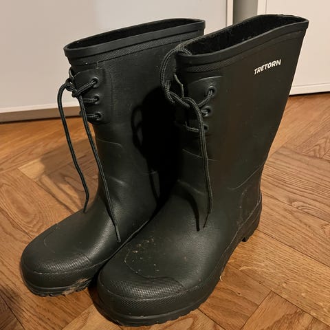 Tretorn barnstövlar för unisex i storlek 34. Stövlarna är svarta och tillverkade av ett vattentätt material, lämpliga för användning i våta och leriga förhållanden. De har ett robust yttersula för bra grepp och stabilitet.