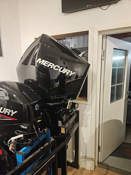 Motorn har varit monterad på båt och endast provkörd för test av propeller