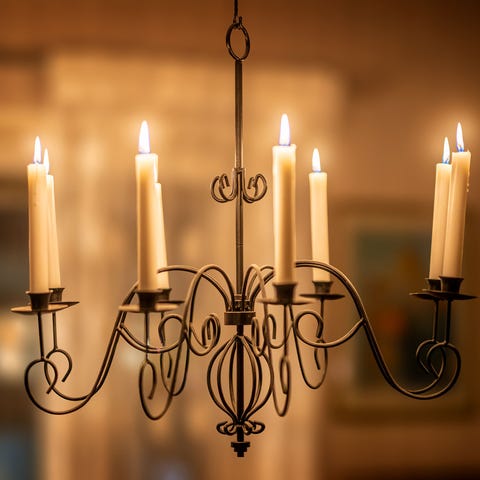 Ljuskrona i smide, plats för sex ljus. Finns i Bälinge en mil N om Uppsala