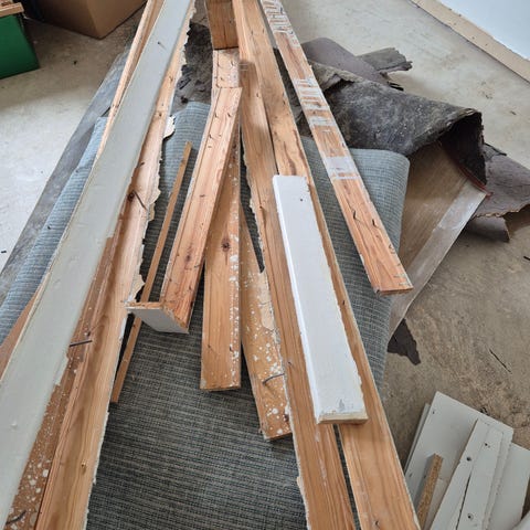 Det finns 30+ meter golvlist och dörrfoder att hämta.