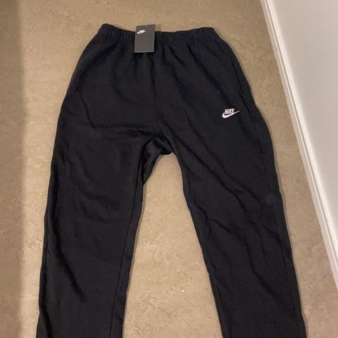 Nike Mjukisbyxor i storlek M, färg svart. Tillverkade av bomull, avsedda för män.