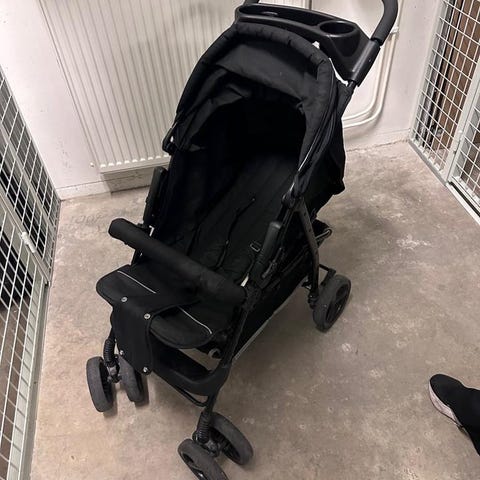 Lätt, hopfällbar grå Tourist sulky från Joie med en förlängningsbar sufflett. Den är supersmidig och lättmanövrerad. Den har en stor varukorg. Perfekt för en promenad i parken.