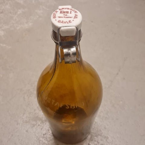 Gammal svagdrickaflaska med träback från Söderhamn.