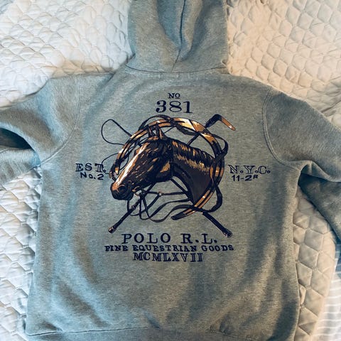 Olivgrön hoodie från Polo Ralph Lauren i storlek XL. De är inte vanlig XL, skulle tror att de passar mellan 160-170cm skriv för mer information.Tröjan har dragkedja, huva och två fickor framtill. Broderad blå logga på bröstet. Tillverkad i mjuk bomull med fleece på insidan, perfekt för chill dagar. Extremt bra skicka och märks knappt att den är använd. Tveka inte på att höra av dig om pris eller information