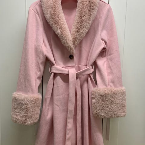 Grå, fluffig kappa från Sheilay. Perfekt för att hålla värmen under kyliga dagar. Kappan har en avslappnad passform och en stor krage.