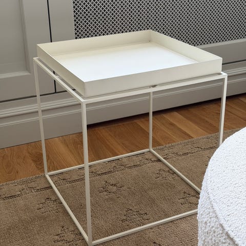 Tevagn på hjul med avtagbar övre skiva. vitlaserad. mått: 68/48/62 ( lxbxh)