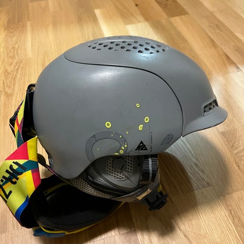 Supercool skidhjälm med läderliknande skal, fräsch insida. High fashion och DYR vid inköp.