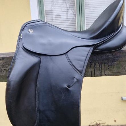 Pfiff Amaretto Dressyrsadel i svart läder, 17.5 tum. Bomvidd vid. Tar mkt manke. Fint använt skick, mkt skön att rida i en, ger god sits. Passar tyvärr inte min nya häst.