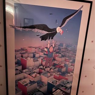 Räv och hare i vinterlandskap. Mått med ram: 57 x 43,5 cm, utan ram: 41 x 28,5. Numrerad originaletsning. Fin.