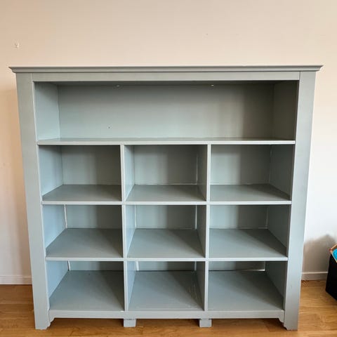 Säljer ett ljusblått charmigt vintage hylla, byggt tidigt 1900-tal.