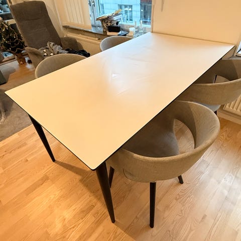 Bordet säljs komplett med fyra robusta ben (avtagbara för enkel transport).