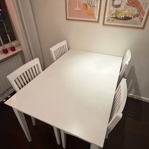 Säljer ett snyggt och gediget matbord i massivt trä med varm träfinish. Bordet är i mycket bra skick och har en stabil och kvalitativ konstruktion. Perfekt för både kök och matsal.