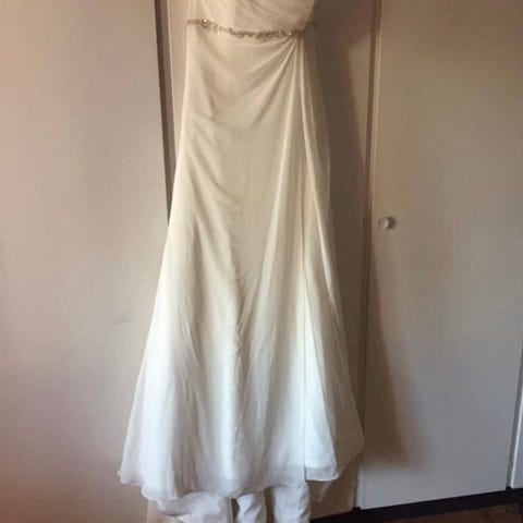 En fantastiskt fin och välbevarad brudklänningen från mitten av 50-talet. Modellen är 169 cm midja 68 cm. Och byst 85.