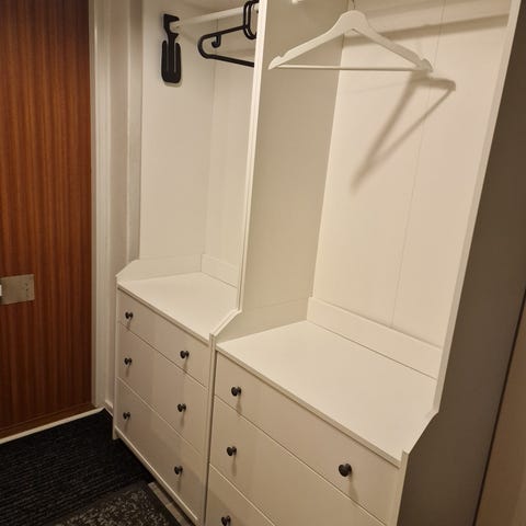 IKEA garderob med två dörrar och tre lådor i svart färg. Möbeln är lämplig för förvaring av kläder. Mått 60*57*181 cm