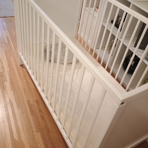 Fin barnsäng med madrass och madrassskydd pris 300 kan levereras