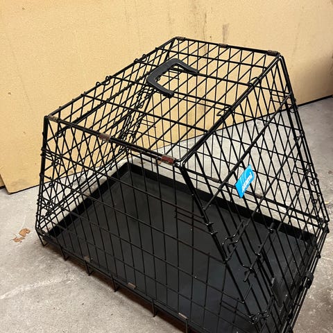 En praktisk hund bur som man både kan ha i bilen och inomhus , säljer för att min hund vuxit ur den . Vill man ha fler bilder skriv