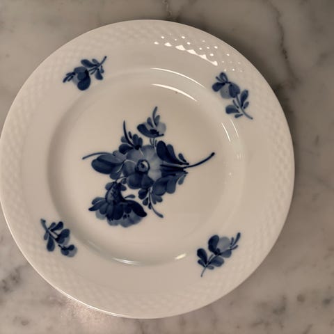 Royal Copenhagen blå blomst tallrikar / assietter med blått blommönster.