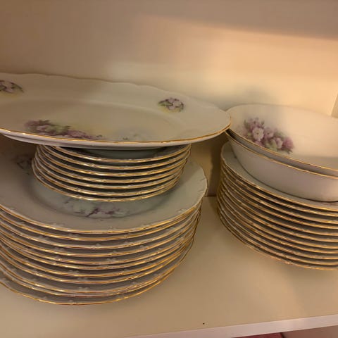Handmålade, otroligt trevlig servis, fin glans på tallrikar. Första sortering, märkning visar äkthet.