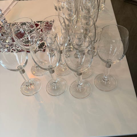 500kr för vinglasen, 500 kr för champagneglasen. Prutat och klart.