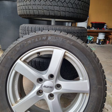 Kompletta v-hjul på plåt fälg 195/65/15 tillverkade 2024 ET47 har suttit på en golf men passar säker flera andra