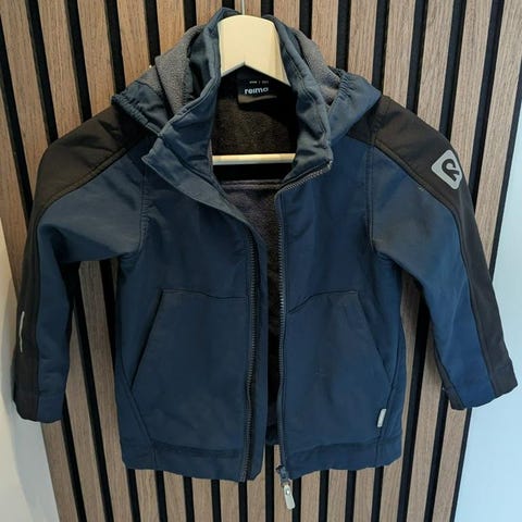 Reima barnjacka i vattentätt softshellmaterial. Mjukt tyg på insidan. Fint skick då den använts lite, inga fläckar eller skador i övrigt.