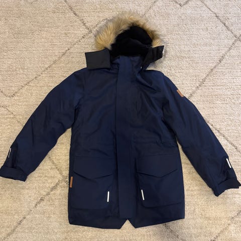 Storlek 146. Praktisk med avtagbar huva och flera reflexer.
