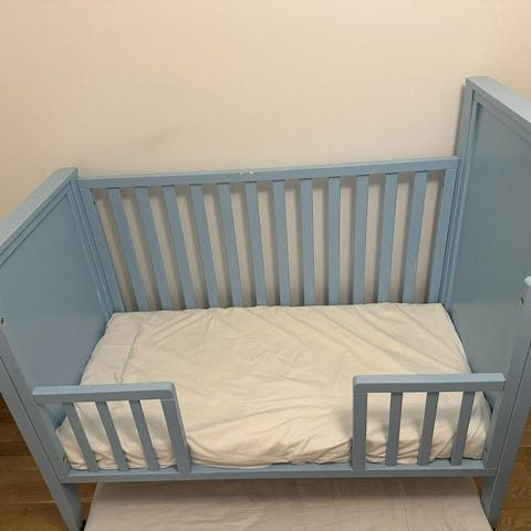 Troll barnsäng 140*70 med sänglåda till förvaring under. Klädställning i grå färg för barnrum. Tillverkad av trä. Till förvaring av barnkläder och accessoarer. Täcke och madrass medföljer.