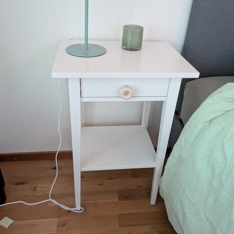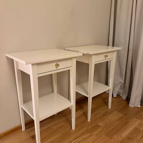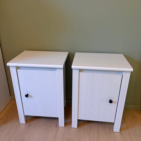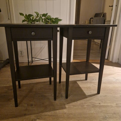 Vi vill byta ut våra vita sängbord till 2 st svart/bruna IKEA Hemnes enligt bild.