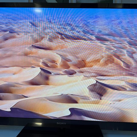 The TV powers on, but due to the broken display it cannot be used normally.