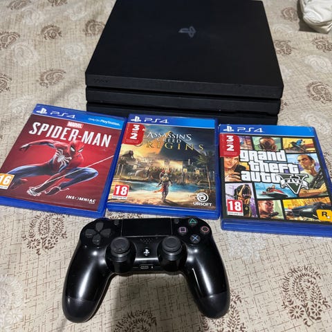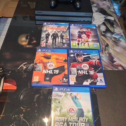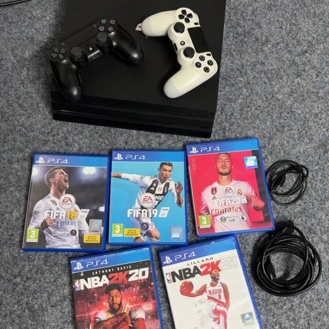 Playstation 4 PRO 1 TB inklusive två handkontroller med tillhörande laddkabel och tio spel. Allt är i mycket gott skick och har inte använts särskilt mycket! Säljer därför med förhoppning om att det kan göra mer nytta hos någon annan. :)