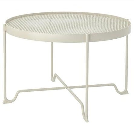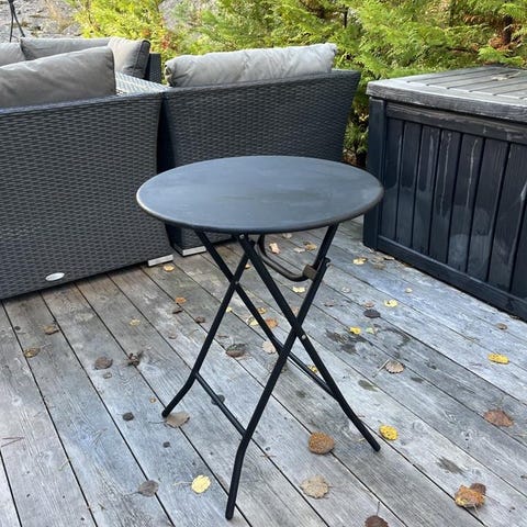 Runt bord med svart bordsskiva och svart metallstativ. Bordet har en stabil konstruktion med fyra ben och är lämpligt för inomhusbruk.