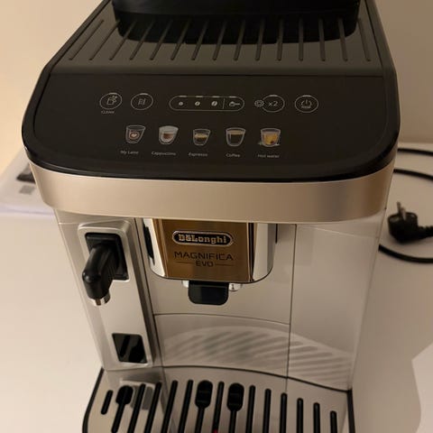 Delonghi Magnifica S ECAM22.117.B kaffemaskin med automatisk espressobryggning och mjölkskummare. Maskinen är svart och har en digital display med flera funktioner för att brygga kaffe och espresso. Nypris 3650.