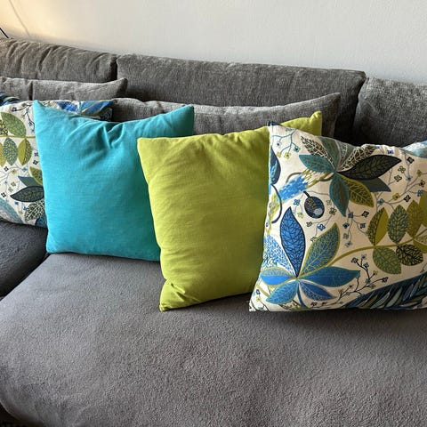 2 st soffkuddar i gott skick. Överdragen går att ta av och tvätta.