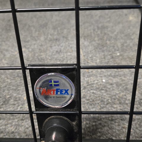 Artfex grind med enkeldörr och lås med två nycklar samt ett lastgaller, båda i princip nyskick då de bara använts ett kort tag och sen blivit ståendes i förråd.