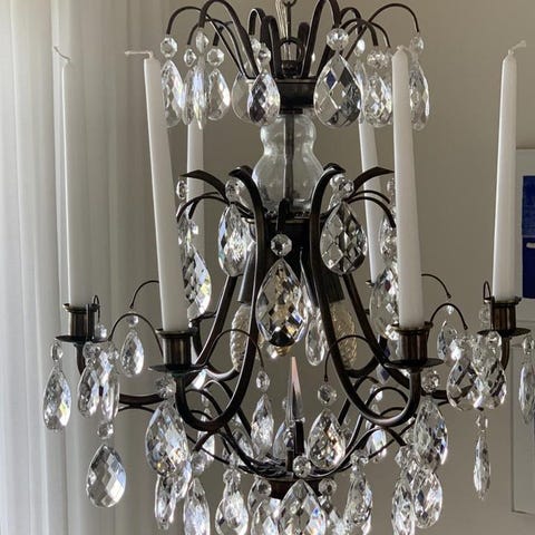 Barock krona med 5 ljusarmar och 5 ljuskällor, 42 cm dia, höjd 60 cm