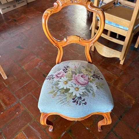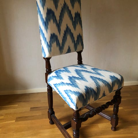 Stol som är lätt att klä om. Ej ner sutten.