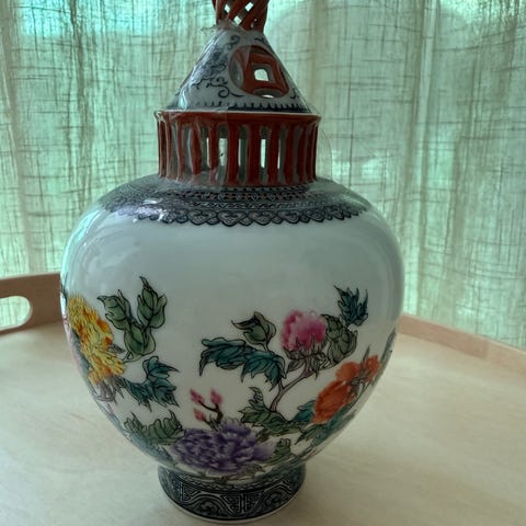 Sökord: kinesisk porslin, ginger jar, porslinsburk, kinesiskt exportporslin, famille rose, handmålat porslin, asiatisk inredning, orientalisk dekor, vintage jar, kinesisk keramik.