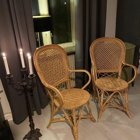 Jättefina karmstolar i svart med sits i rotting!