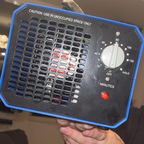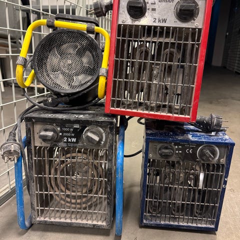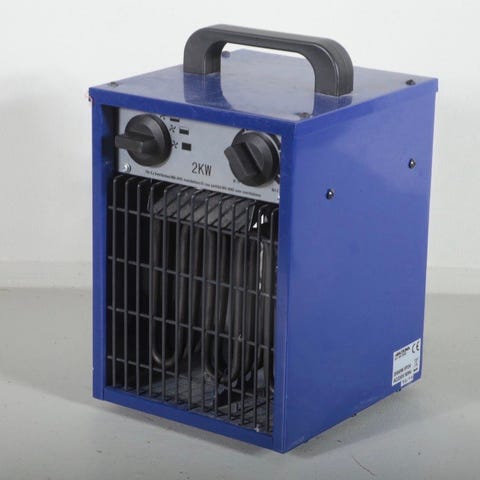 Okänd Modell (tror den köptes på typ Jula) elvärmefläkt med effekt på 2000W. Enheten är röd och utrustad med två reglage för inställning av värme och fläkthastighet. Har handtag för enkel transport.