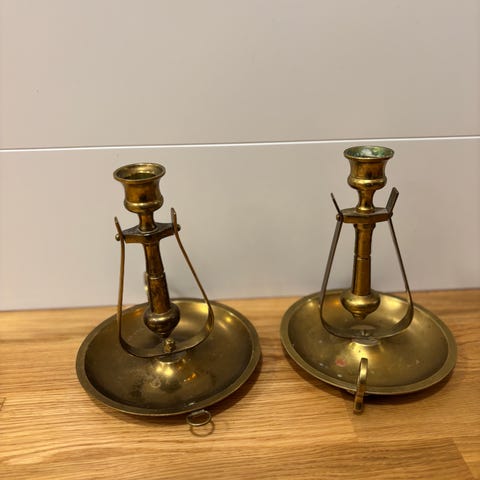 En fin handmålad ljusstake som har ett handtag som gör att det är lätt att flytta på den. Den är glaserad som ger en vacker glansig yta.