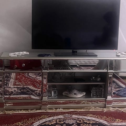 - TV-bänk. Själva bänken är i bra skick. Bara en lucka där gångjärnet har gått sönder. Går att laga.