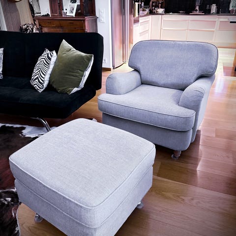 Säljer 2 x fotöljer med fotpall då de inte passar in i övrig möblering.