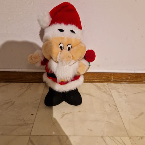 Mio Jul Dekoration i plåt med motiv av barn och jultomtar. Passar för juldekoration och kan stå på bord eller hylla. Mått ca 20-25 cm höga. Samma motiv på båda sidorna . Stabila på en svart plåtfot.
