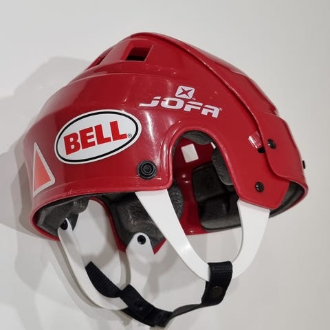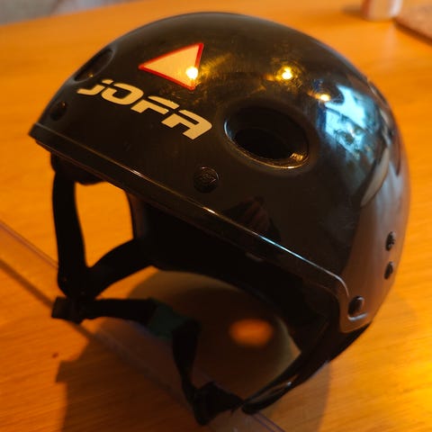 Storlek: hittar inte märkning men uppskattar 50-53cm när jag jämför med hockeyhjälm.